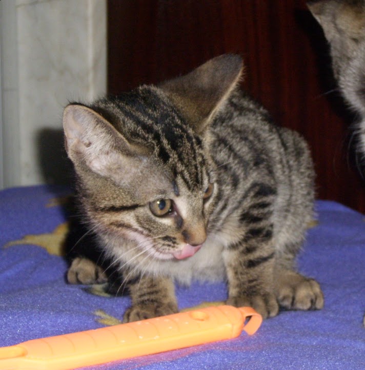 Esta gatinha lindíssima, com olhos da cor do mel, e das savanas africanas e mais 3 manos, com cerca de 4 mesitos, foram resgatados de uma zona muito movimentada e de sérios riscos, em Lisboa.